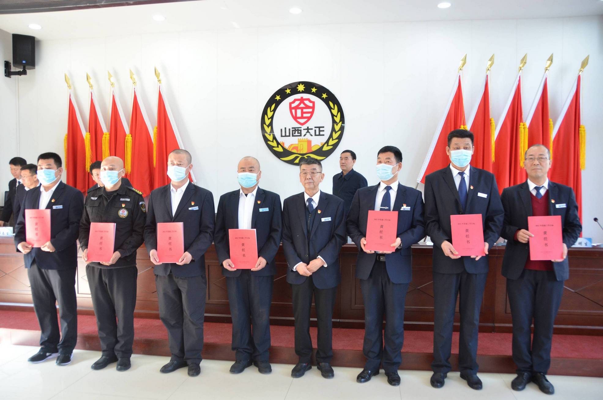 會上,黨委書記、董事長張躍生向公司各子公司、各部門、各黨支部負責(zé)人頒發(fā)了黨建目標(biāo)責(zé)任書、黨風(fēng)廉潔目標(biāo)責(zé)任書,黨委副書記、總經(jīng)理趙培宏向公司各子公司、各部門負責(zé)人頒發(fā)綜合治理目標(biāo)責(zé)任書、安全生產(chǎn)目標(biāo)責(zé)任書。大會在《大正保安之歌》歌聲中圓滿落幕。