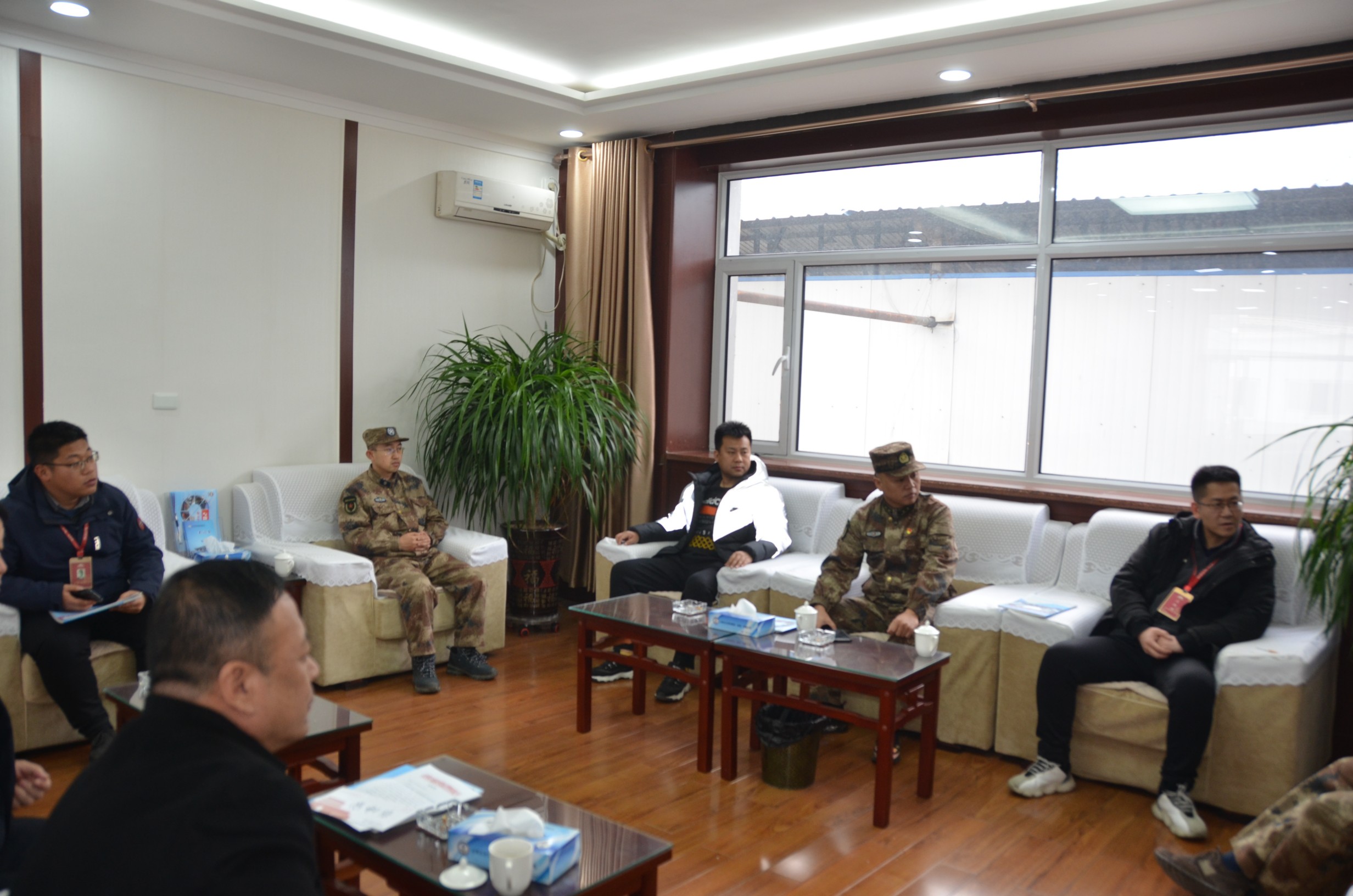 2月10日,忻府區(qū)人武部部長(zhǎng)李強(qiáng)和忻州古城相關(guān)負(fù)責(zé)人一行五人為物業(yè)公司民兵應(yīng)急連送來(lái)一封熱情洋溢的感謝信,與集團(tuán)公司黨委委員、副總經(jīng)理王明生等領(lǐng)導(dǎo)座談交流。