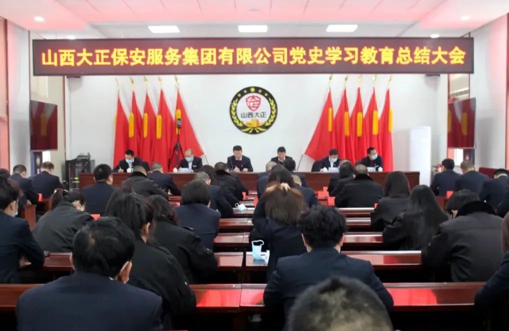 2022年1月24日上午,山西大正保安服務(wù)集團(tuán)有限公司召開黨史學(xué)習(xí)教育總結(jié)大會(huì)。會(huì)議深入貫徹落實(shí)習(xí)近平總書記重要指示精神和黨史學(xué)習(xí)教育總結(jié)會(huì)議精神,全面總結(jié)了一年來公司黨史學(xué)習(xí)教育工作開展情況,并對公司今后進(jìn)一步拓展黨史學(xué)習(xí)教育成果做出了部署,指明了方向。集團(tuán)公司黨委副書記、總經(jīng)理趙培宏主持會(huì)議并作總結(jié)講話。黨委副書記、副總經(jīng)理陳志平出席會(huì)議并作公司黨史學(xué)習(xí)教育總結(jié)報(bào)告。公司領(lǐng)導(dǎo)班子成員、各單位、各分公司負(fù)責(zé)人、機(jī)關(guān)全體職工參加大會(huì)。
