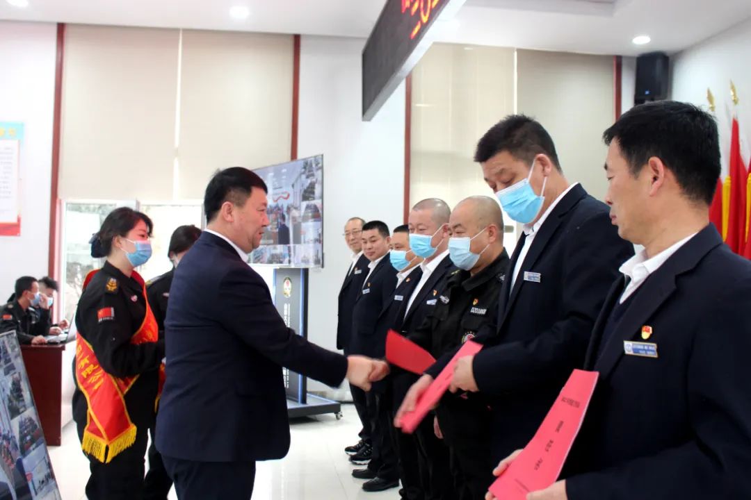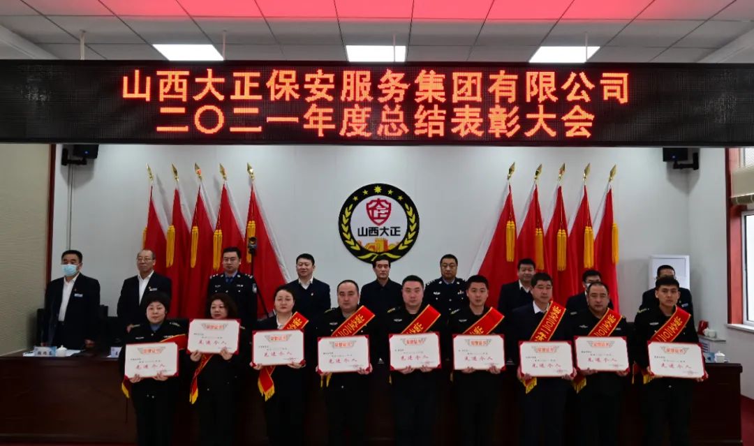 王明生宣讀《山西大正保安服務(wù)集團(tuán)有限公司二0ニ一年度“雙先”評比表彰決定》。隨后進(jìn)行了頒獎儀式。對受表彰的2021年度先進(jìn)單位、先進(jìn)集體、安全標(biāo)兵團(tuán)隊(duì)、新聞報(bào)道先進(jìn)單位、先進(jìn)班(車、庫)組、優(yōu)秀管理者、先進(jìn)個(gè)人頒發(fā)獎牌獎狀證書。