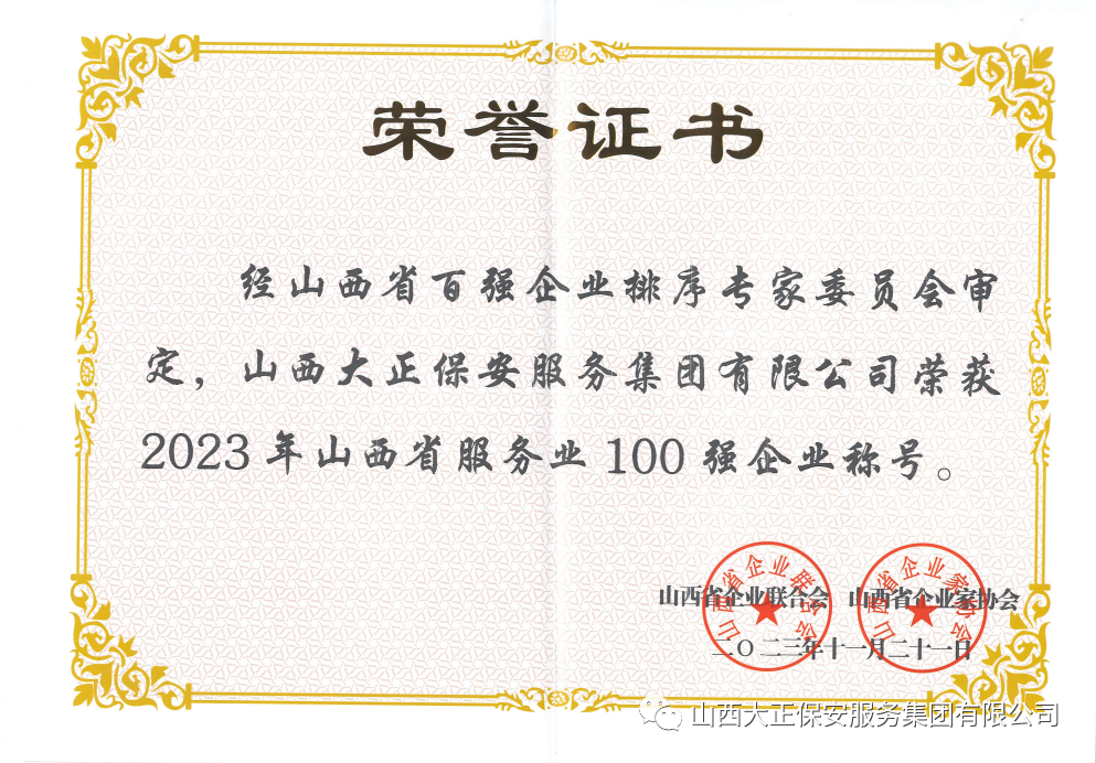山西大正保安服務(wù)集團(tuán)有限公司作為市屬唯一一家國有安保企業(yè),22年來緊緊圍繞強(qiáng)企興企第一要?jiǎng)?wù),把握時(shí)代發(fā)展機(jī)遇,積極貫徹新發(fā)展理念,主動(dòng)擔(dān)當(dāng)作為、認(rèn)真履職盡責(zé),不斷提升服務(wù)水平,努力推動(dòng)建設(shè)國內(nèi)一流綜合型保安服務(wù)集團(tuán)的步伐,在國企黨建、內(nèi)部管理、經(jīng)營業(yè)績、企業(yè)文化、安全生產(chǎn)、履行社會(huì)責(zé)任等方面不斷規(guī)范推進(jìn),連續(xù)9年榮獲“山西省服務(wù)業(yè)企業(yè)100強(qiáng)”,展現(xiàn)出山西大正保安集團(tuán)由小變大、由弱變強(qiáng)的奮進(jìn)歷程,創(chuàng)造了山西大正保安集團(tuán)全方位高質(zhì)量發(fā)展的新偉業(yè)。