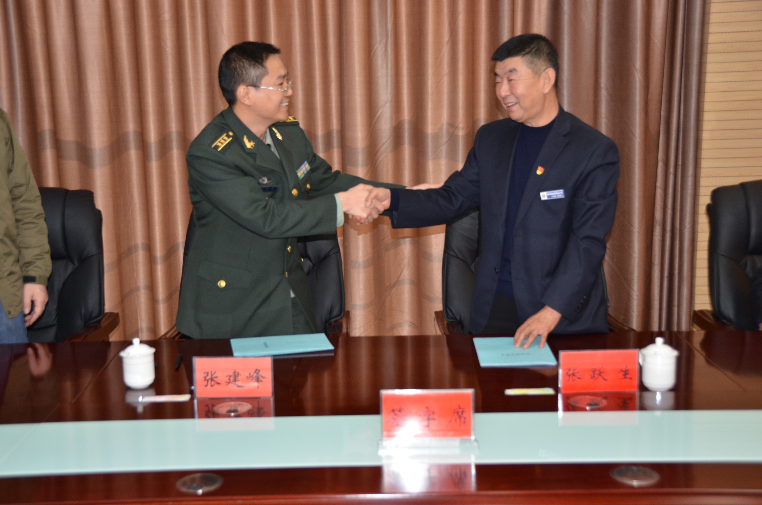 忻府區(qū)人民武裝部部長張建峰同志召集所屬負(fù)責(zé)人與我公司領(lǐng)導(dǎo)在該部會議室召開忻府區(qū)民兵應(yīng)急連臨時(shí)勤務(wù)協(xié)議簽字儀式。雙方領(lǐng)導(dǎo)暢談軍旅生涯,暢所欲言,對合作開展執(zhí)行勤務(wù)事宜進(jìn)行細(xì)致研究,武裝部領(lǐng)導(dǎo)對我公司的隊(duì)伍建設(shè)作風(fēng)以及企業(yè)服務(wù)精神面貌給與了充分肯定。