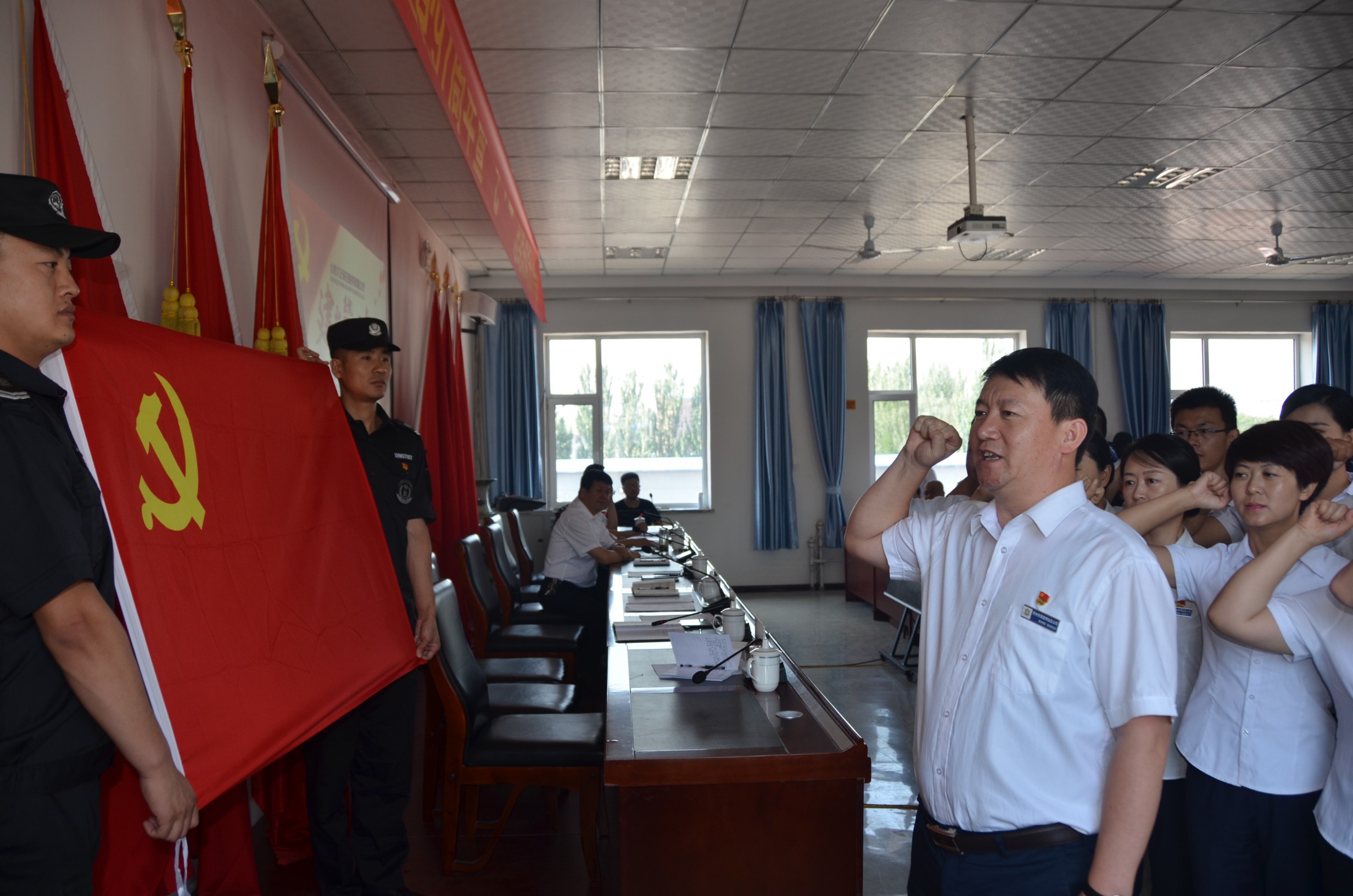 黨委委員、副總經(jīng)理趙培宏同志帶領(lǐng)新發(fā)展的8名黨員和4名預備黨員進行了入黨宣誓。