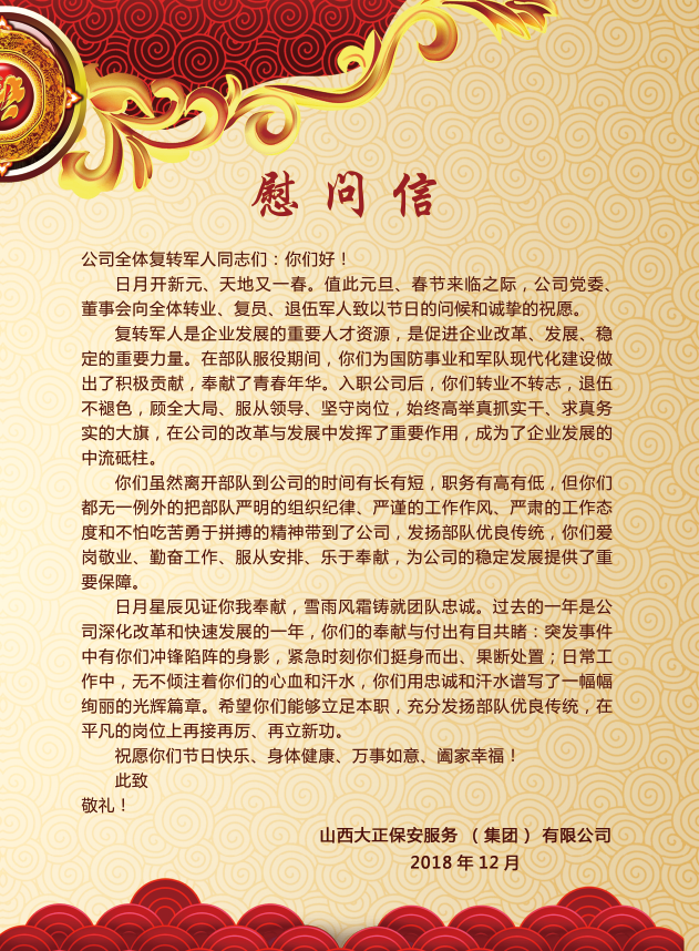 致復(fù)轉(zhuǎn)軍人慰問信