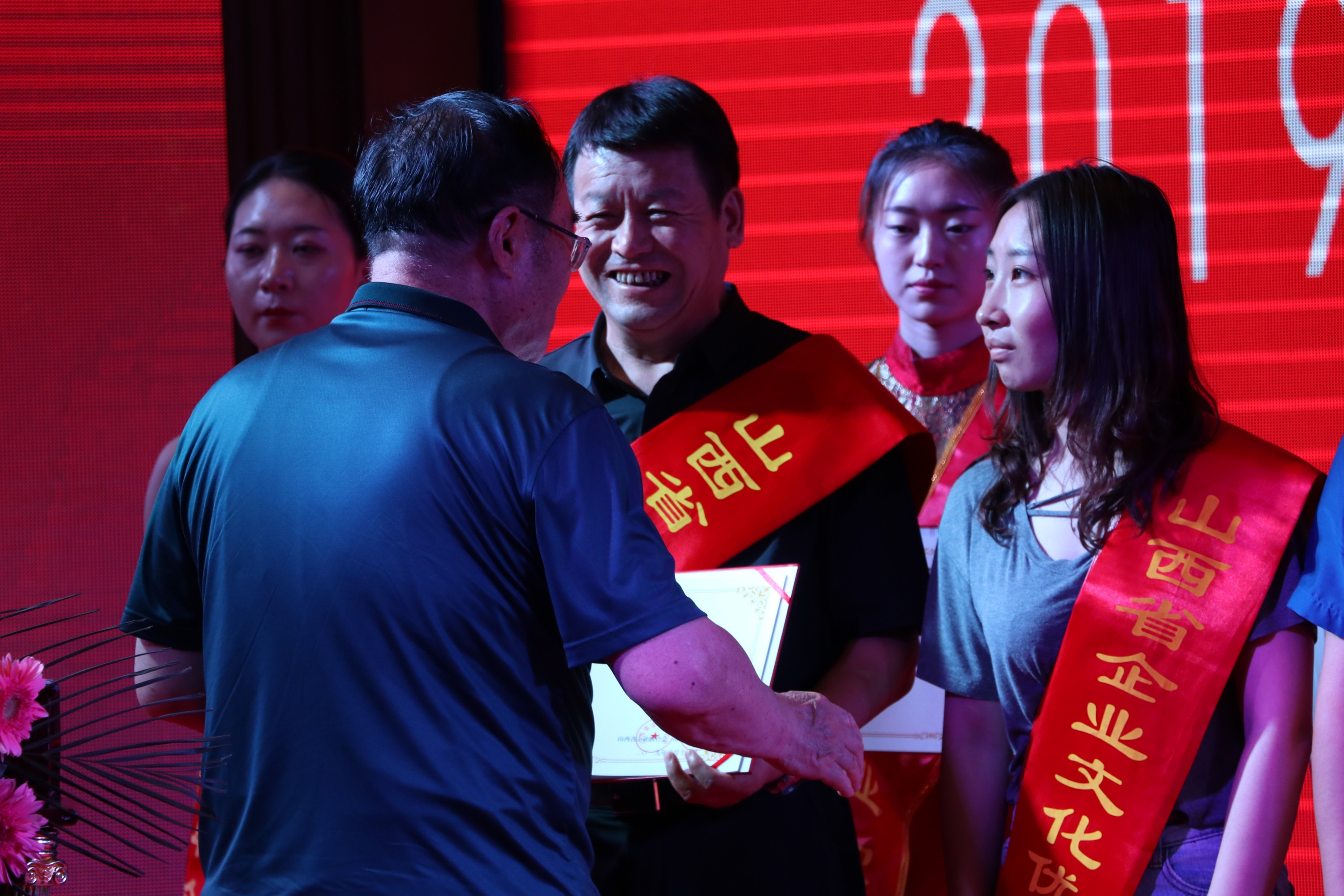 會上,公司連續(xù)第四年被評為“山西省功勛企業(yè)”,張躍生連續(xù)第四年被評為“功勛企業(yè)家”,公司《圍繞中心抓黨建、抓好黨建促發(fā)展》文化成果獲得山西省首屆企業(yè)優(yōu)秀文化成果一等獎,張躍生、陳志平分別上臺領(lǐng)獎。