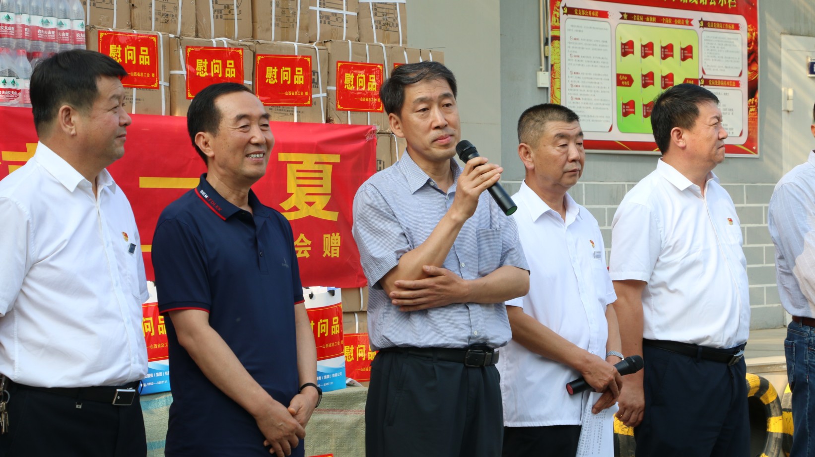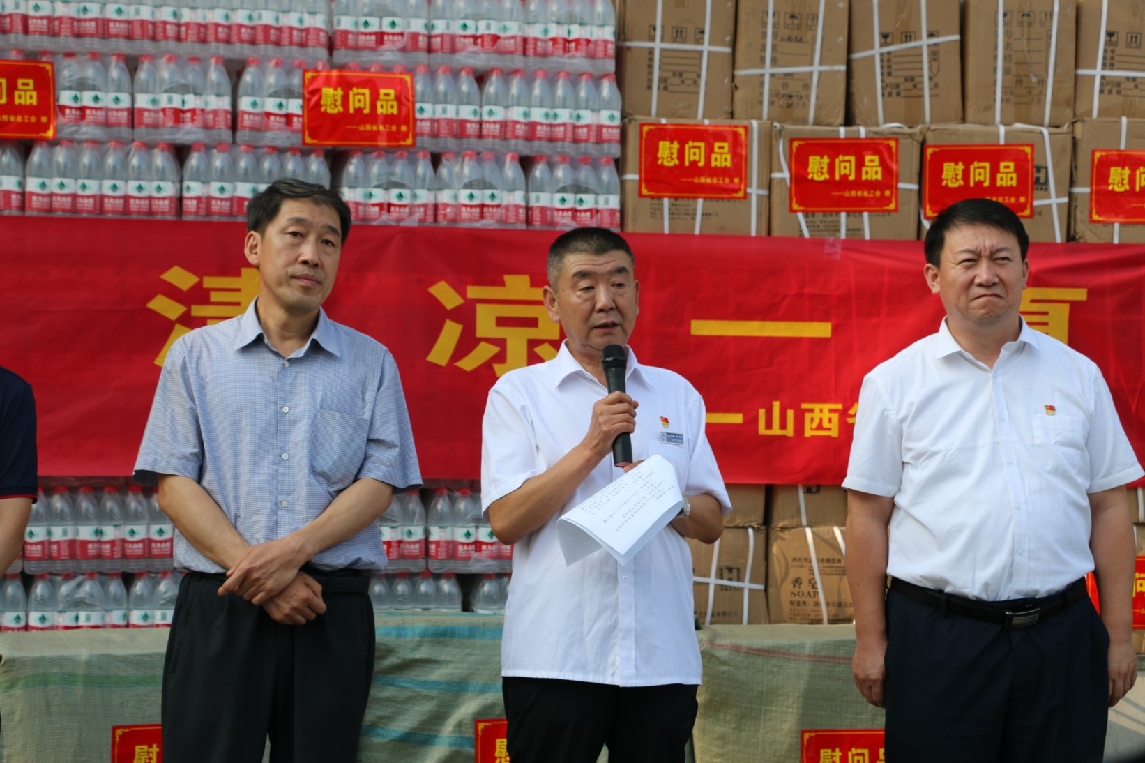 7月27日下午,省、市兩級(jí)總工會(huì)領(lǐng)導(dǎo)蒞臨我公司舉行“夏季送清涼”慰問活動(dòng),為堅(jiān)守在一線的職工朋友們送上夏日的關(guān)懷與問候,同時(shí)為職工朋友們贈(zèng)送一批防暑用品和對(duì)公司困難職工進(jìn)行慰問。省總工會(huì)黨組成員、副主席張亞琳;省總工會(huì)經(jīng)濟(jì)技術(shù)部副部長高偉;市人大副主任、市總工會(huì)主席魏廣才;市總組黨組書記、常務(wù)副主席王書鴻;市總工會(huì)副主席曲文斌;市總工會(huì)副主席左文蕾;公司黨政班子成員參加此次活動(dòng);顒(dòng)由山西大正保安服務(wù)有限公司黨委書記、董事長張躍生主持。