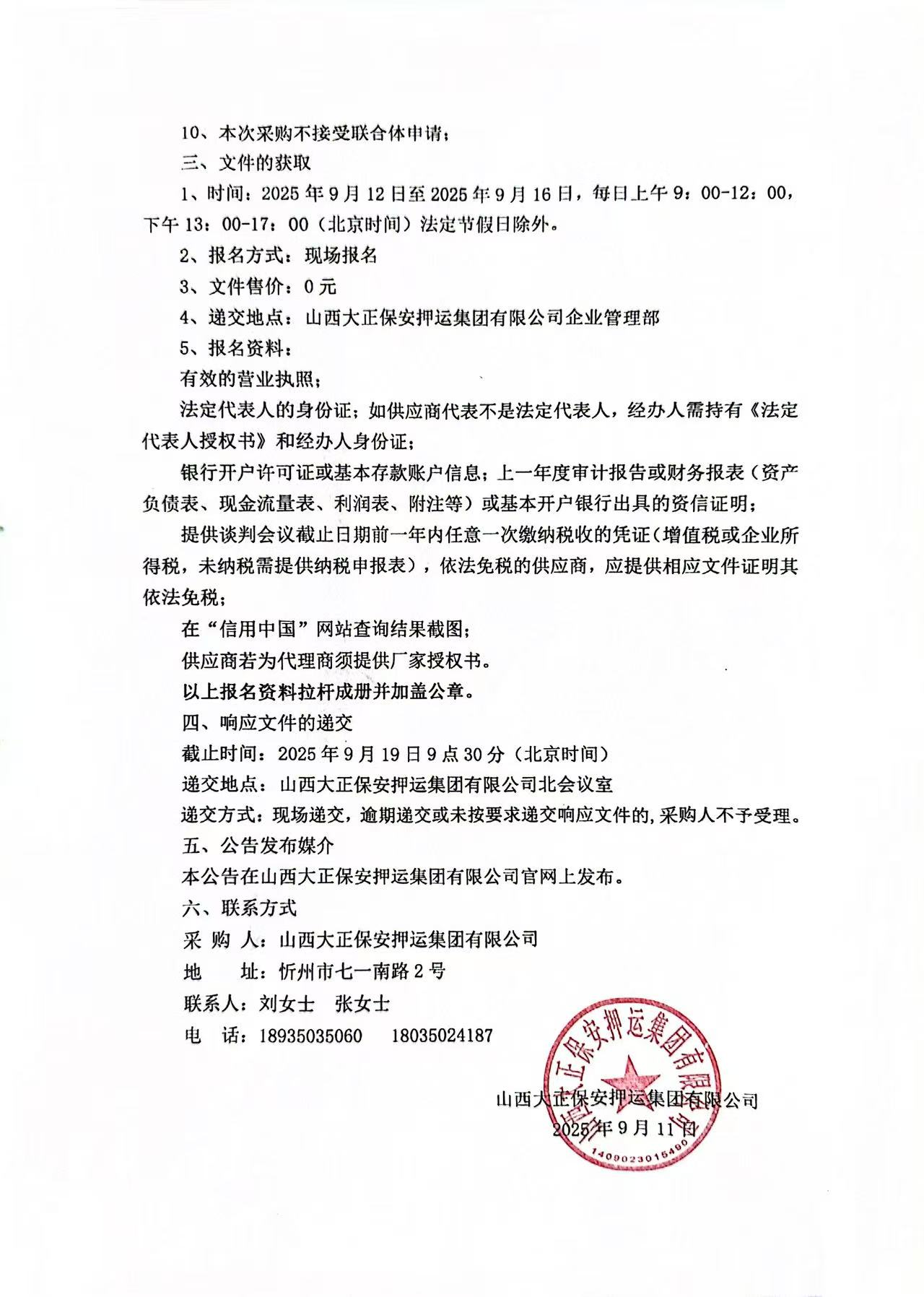 山西大正保安押運集團有限公司