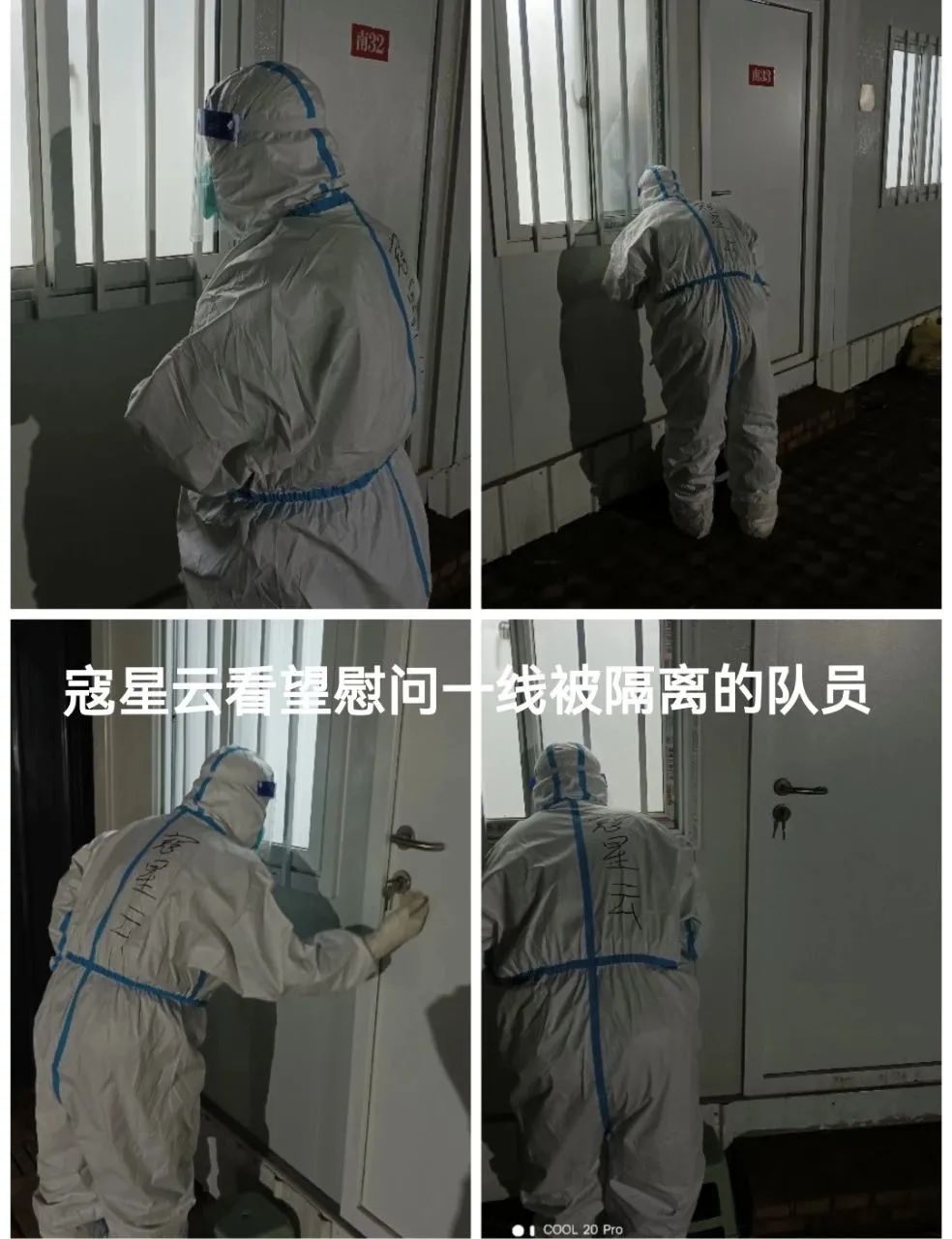 關(guān)心溫暖人心,關(guān)懷凝聚力量,領(lǐng)導(dǎo)的關(guān)心是對一線員工的最大安慰和精神鼓舞,組織的關(guān)懷是凝聚力量、激發(fā)斗志的不竭動力,不論是出征前的動員講話,還是送別隔離區(qū)一線隊(duì)員的鼓勵和問候,以及在微信群里的囑咐鼓勁,寇星云同志始終把大家的個人安危放在第一位,時刻叮囑隊(duì)員們必須做好自我防護(hù),確保自身安全,堅(jiān)決杜絕內(nèi)部感染傳播,只有自己安全才能更好地服務(wù)病患、服務(wù)好隔離人員,才能高質(zhì)量、高標(biāo)準(zhǔn)完成我們的使命任務(wù),才是對家人、對社會的真正負(fù)責(zé)。他鼓勵大家發(fā)揮守押隊(duì)伍能征善戰(zhàn)、沖鋒陷陣、挑戰(zhàn)自我,苦干實(shí)干的優(yōu)良作風(fēng),堅(jiān)定抗疫有我、戰(zhàn)疫必勝、疫情不散、堅(jiān)守陣地的信心和決心。對在工作中因勞累過度、身體受傷、出現(xiàn)不適的隊(duì)員更是關(guān)心備至、體貼入微,親自看望受傷隊(duì)員田振華,關(guān)心照顧因低血糖暈倒在一線的隊(duì)員吳彩霞,慰問在隔離宿舍和方艙隔離區(qū)因勞累過度出現(xiàn)身體不適的13名隊(duì)員,給他們送去生活用品,并和他們進(jìn)行親切地交談,帶去組織的關(guān)懷,領(lǐng)導(dǎo)的關(guān)心,凝聚人心,鼓舞士氣。