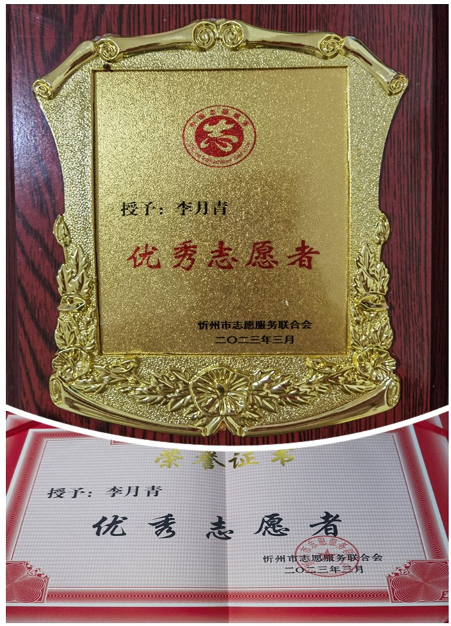 山西大正集團(tuán)公司李月青榮獲忻州市志愿服務(wù)聯(lián)合會(huì)2022年度“優(yōu)秀志愿者”榮譽(yù)稱號(hào),并作為志愿者團(tuán)隊(duì)代表發(fā)言。