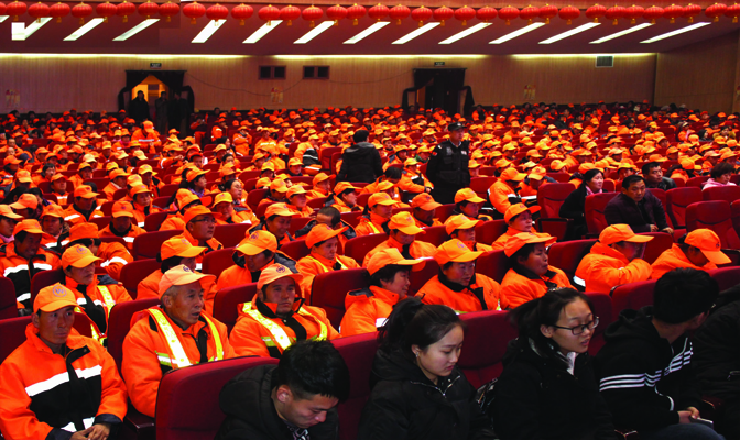 忻州市保安押運(yùn)護(hù)衛(wèi)中心、保安服務(wù)公司總經(jīng)理張躍生、黨委書記陳志平,忻州市環(huán)衛(wèi)處處長(zhǎng)石建新和現(xiàn)場(chǎng)500余名環(huán)衛(wèi)工人代表共同觀看了演出。