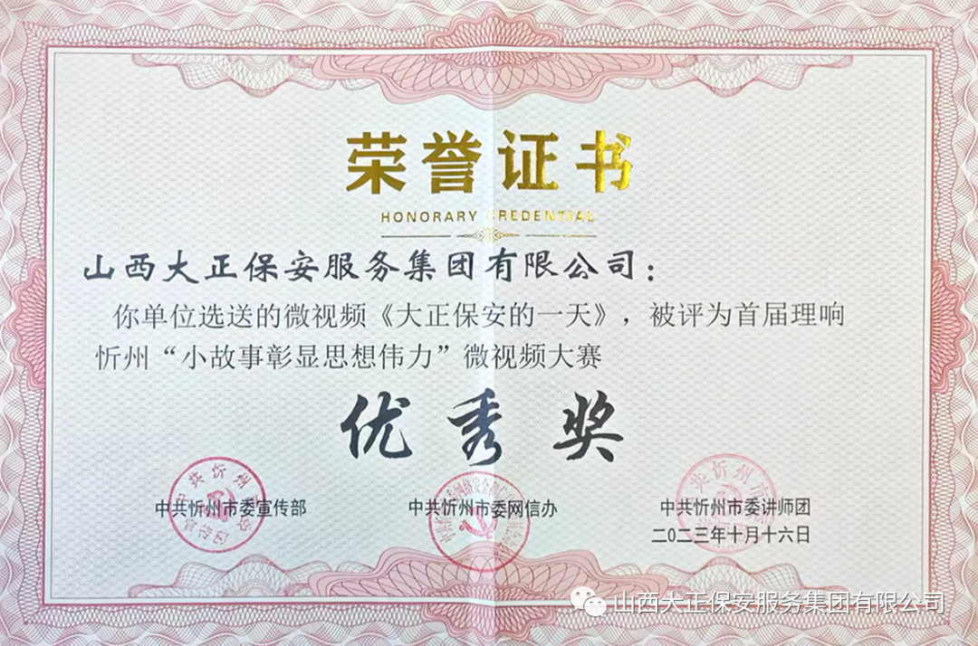 中共忻州市委宣傳部、中共忻州市委網(wǎng)信辦、中共忻州市委講師團聯(lián)合舉辦的首屆理響“小故事彰顯思想偉力”評選結果日前公布,我公司選送的作品《大正保安的一天》獲優(yōu)秀獎。