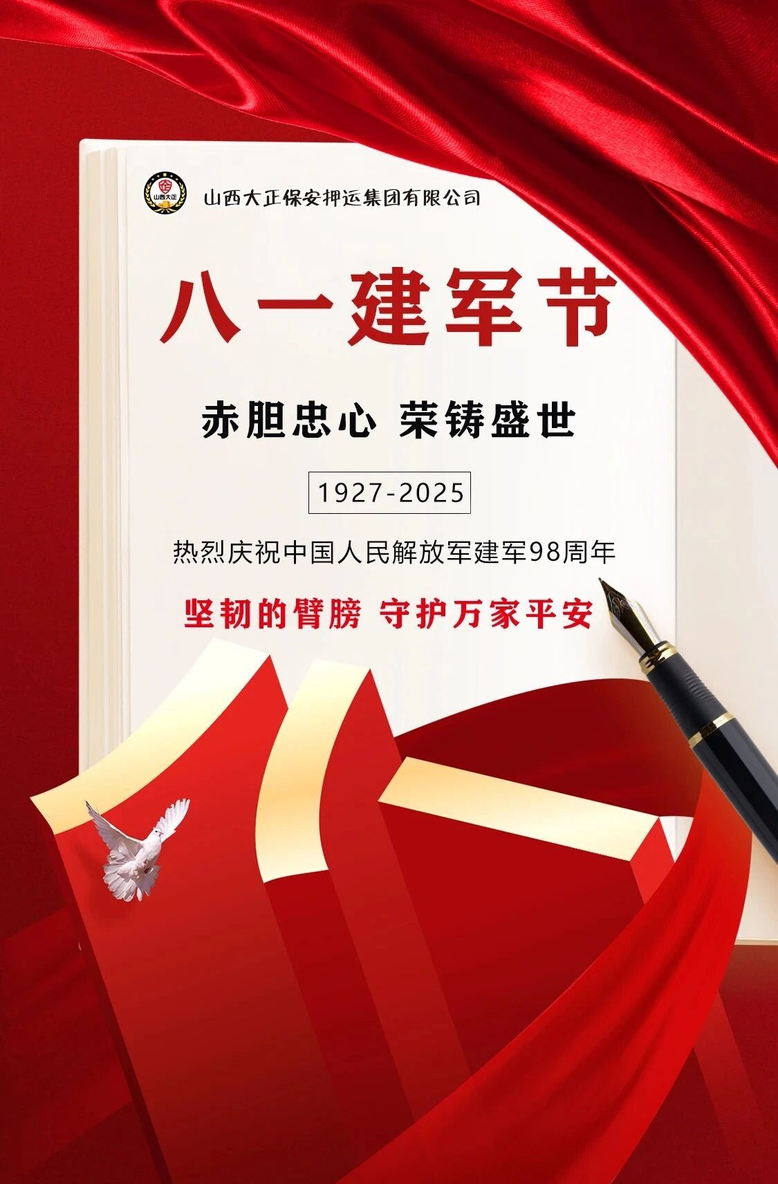 軍旗獵獵,初心如磐。為熱烈慶祝中國人民解放軍建軍98周年,傳承紅色基因,弘揚(yáng)優(yōu)良傳統(tǒng),進(jìn)一步增強(qiáng)退役軍人的榮譽(yù)感、歸屬感和幸福感。8月1日,山西大正保安押運(yùn)集團(tuán)有限公司組織召開迎“八一”建軍節(jié)暨退伍軍人座談會。集團(tuán)公司黨委委員、副總經(jīng)理王明生,黨委委員邢春生及領(lǐng)導(dǎo)班子成員,機(jī)關(guān)、各子公司退役軍人員工代表和軍屬共計40余人齊聚一堂,共憶軍旅生涯,共話職責(zé)使命,共謀公司發(fā)展。