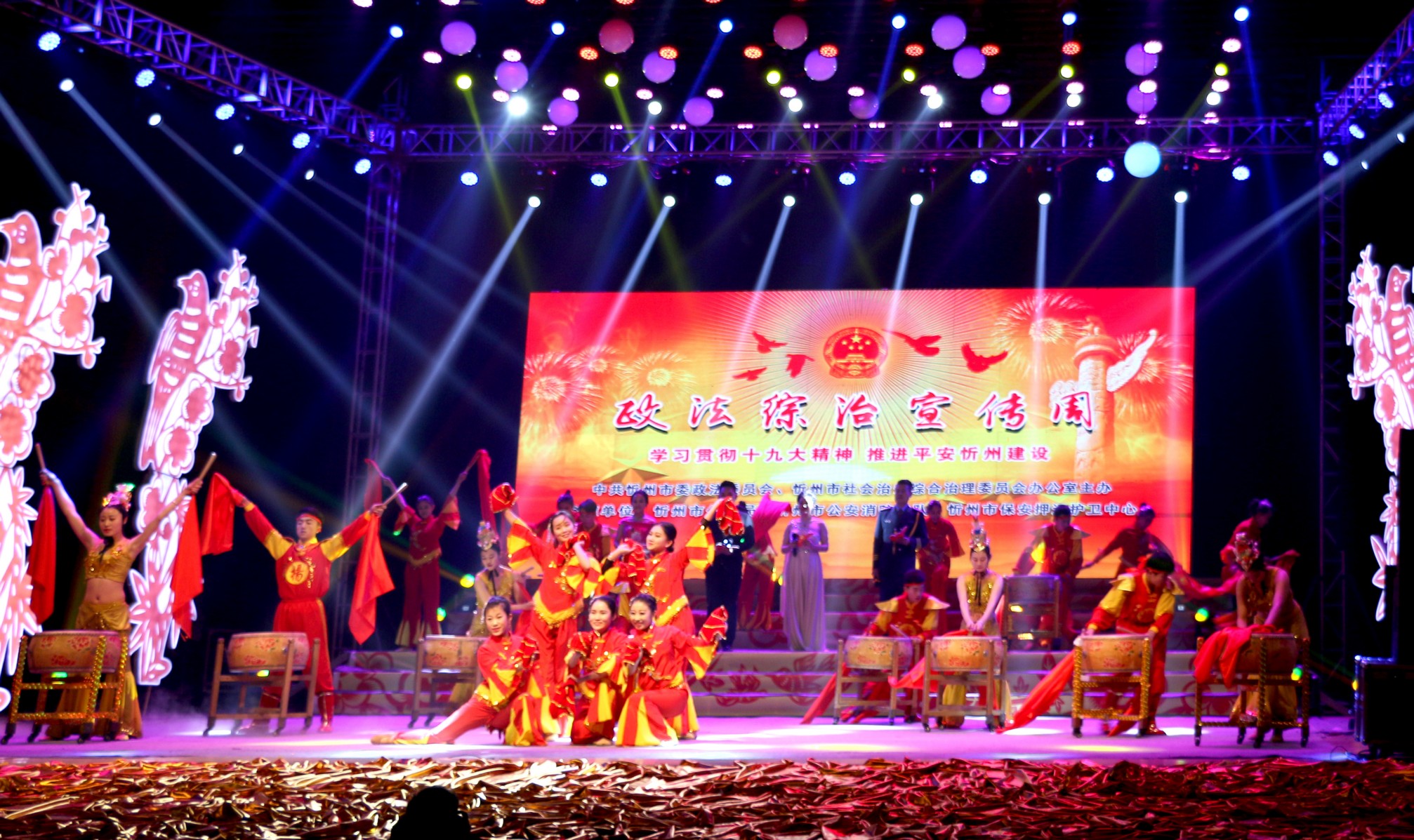 晚會以“學(xué)習(xí)貫徹十九大精神,推進(jìn)平安忻州建設(shè)”為主題,歌頌了忻州市在平安建設(shè)中取得的卓越成績和政法綜治戰(zhàn)線干部的無私奉獻(xiàn)精神。晚會節(jié)目精彩紛呈,“牽手平安”藝術(shù)團(tuán)表演的《鼓舞中華》、男女對唱《幸福贊歌》、小合唱《強(qiáng)軍戰(zhàn)歌》、歌伴舞《建設(shè)和諧大家園》等節(jié)目獲得了觀眾陣陣掌聲。