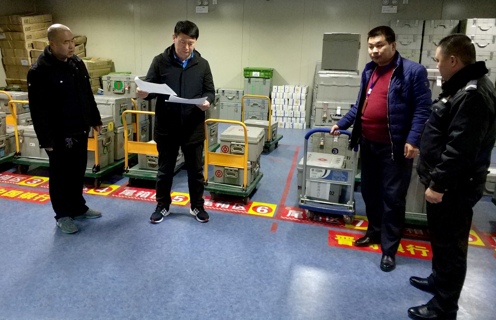 2017年12月31日晚,在副總經(jīng)理趙培宏帶領(lǐng)下,總經(jīng)理助理寇星云、勤務指揮中心楊貴文、保衛(wèi)部張龍以及一公司相關(guān)負責人對城區(qū)中心庫中隊進行了2017年年終尾箱庫清查工作。