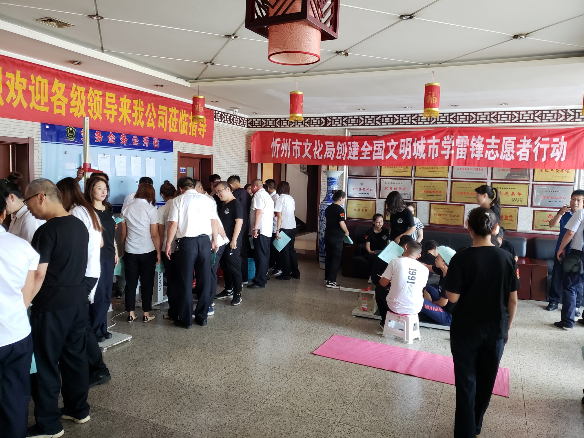 2018年7月20日忻州市文化局創(chuàng)建全國文明城市學(xué)雷鋒志愿者來到公司為公司員工開展了一次全面的體質(zhì)監(jiān)測活動,此次體質(zhì)監(jiān)測是為了響應(yīng)國家提出健康中國2030戰(zhàn)略布局,引導(dǎo)員工科學(xué)進(jìn)行體育運(yùn)動合理安排膳食結(jié)構(gòu)的一次無償監(jiān)測服務(wù)。