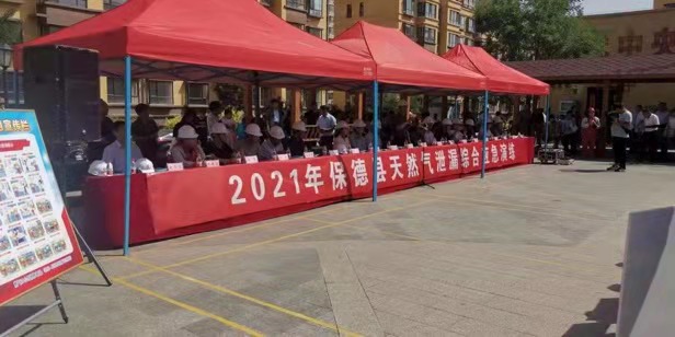 演練科目為上午9時(shí)20分,保德縣新城區(qū)惠民家園東區(qū)七號樓燃?xì)夤艿辣I用燃?xì)庠斐墒覂?nèi)燃?xì)獯罅啃孤l(fā)室內(nèi)燃?xì)獗计鸹,燃燒引燃廚房內(nèi)雜物,且爆燃造成的陽臺玻璃破碎散落,周圍群眾較多場面混亂,造成一人輕傷一人被困,現(xiàn)場人員立即向燃?xì)夤緢?bào)警。