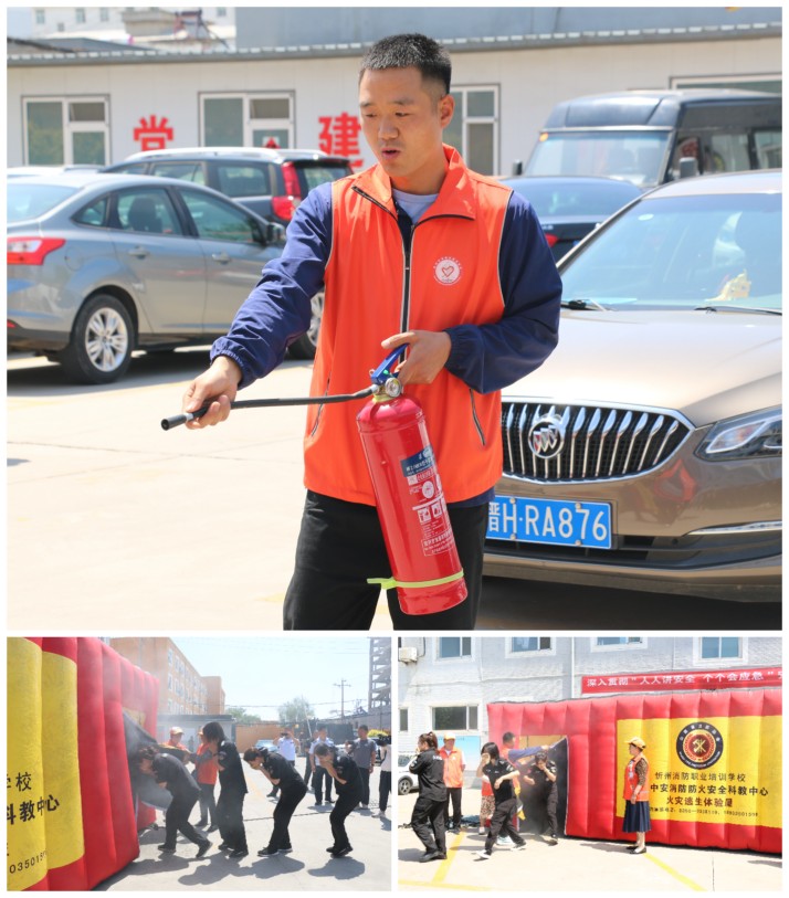忻州市消防培訓職業(yè)學校工作人員走進億通公司,通過消防知識講座、火災逃生體驗屋、滅火器現(xiàn)場教學等方式,為億通公司全體員工上了一堂實用的消防安全培訓演練課。